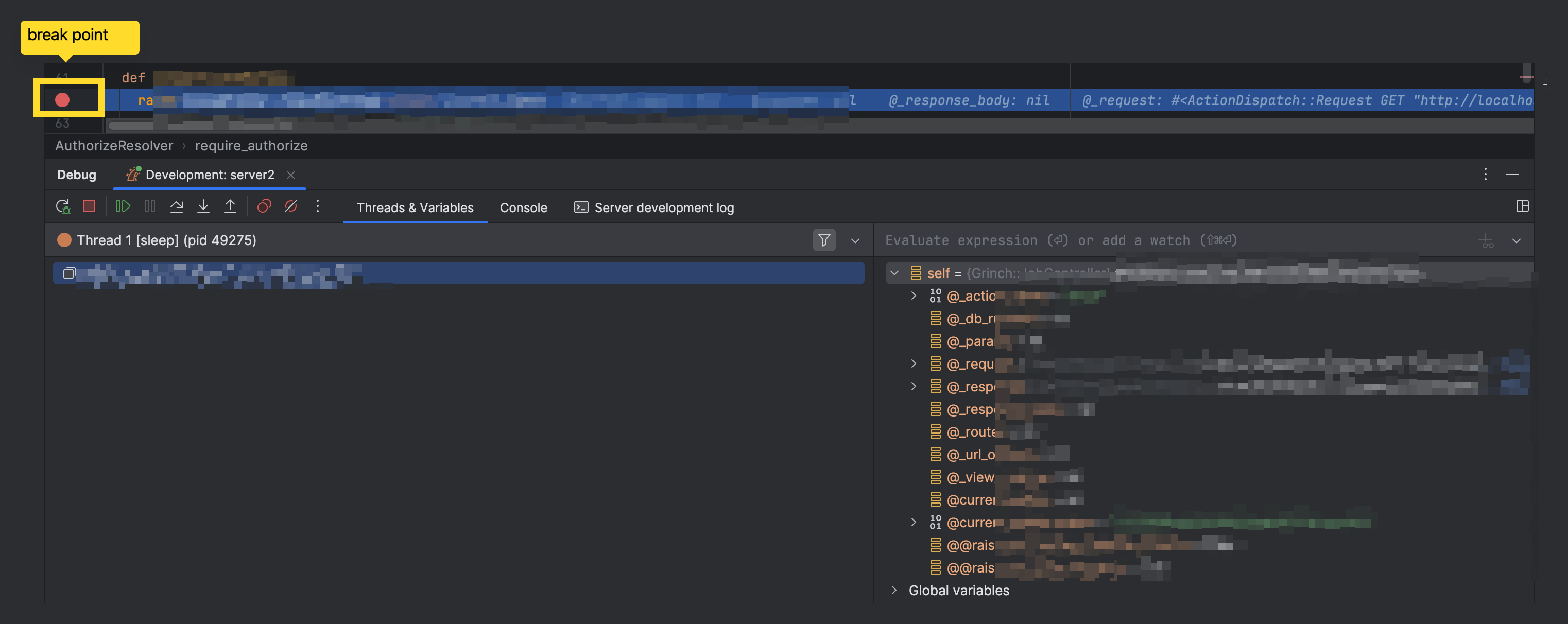 즉, debugger 는 puma 의 master process 에 붙어있는 것이다.
